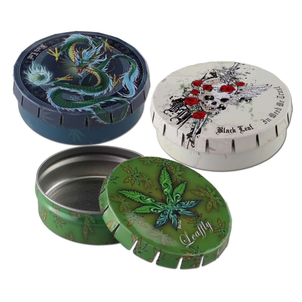 La scatola "ClickClack" è disponibile con molti bellissimi e/o divertenti motivi Black Leaf®, molti dei quali realizzati da Sly!