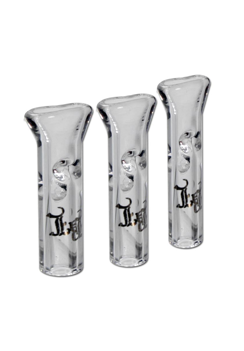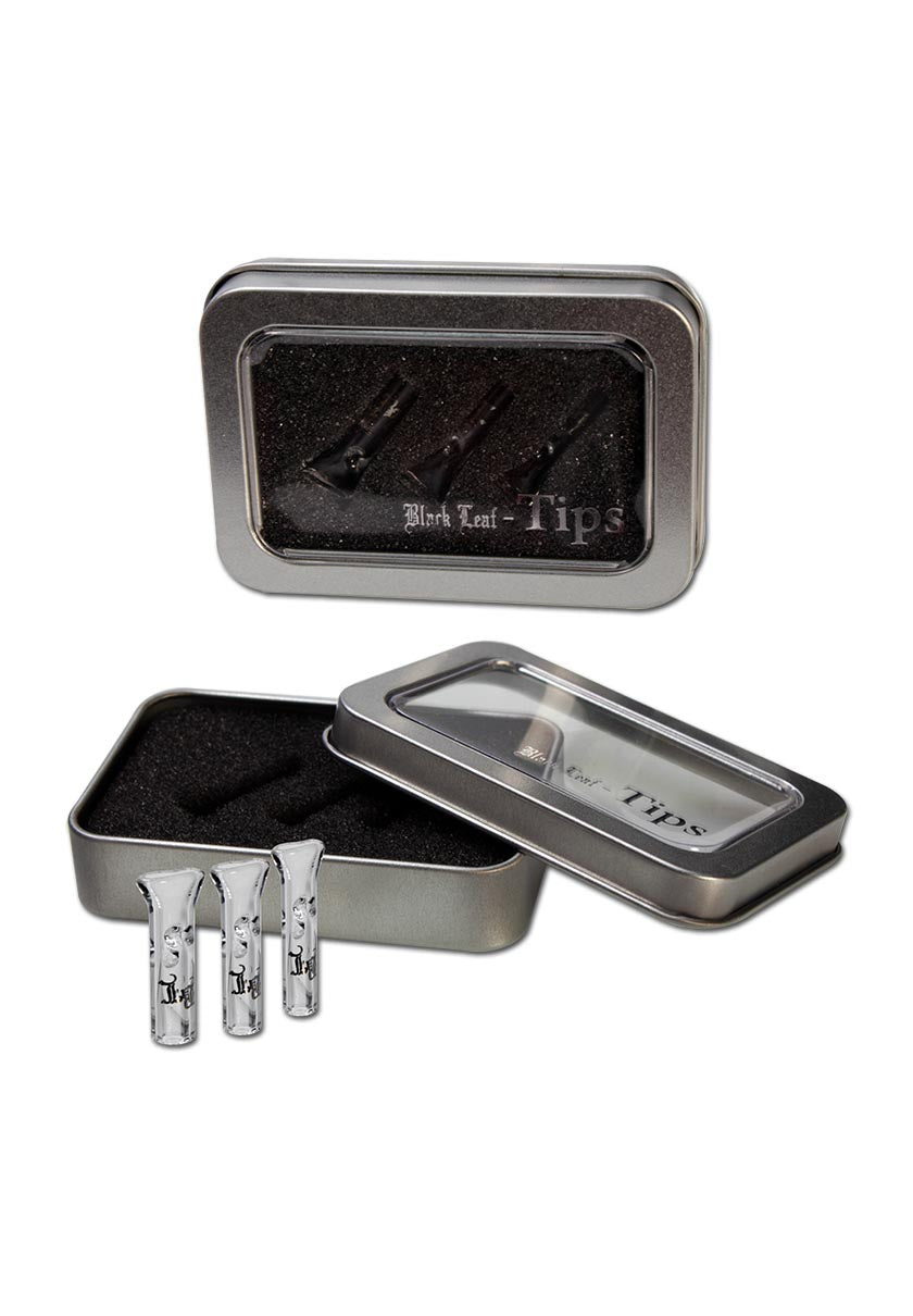 Filtri in vetro borosilicato fatti a mano Black Leaf® per sigarette rollate. Il bocchino può essere rollato nella carta. È possibile applicare preventivamente al boccaglio un tubo filtrante a carbone attivo o un filtro in carta. I Tips Black Leaf® assicurano puro piacere con stile: niente più sapore di carta, niente più filtri molli!