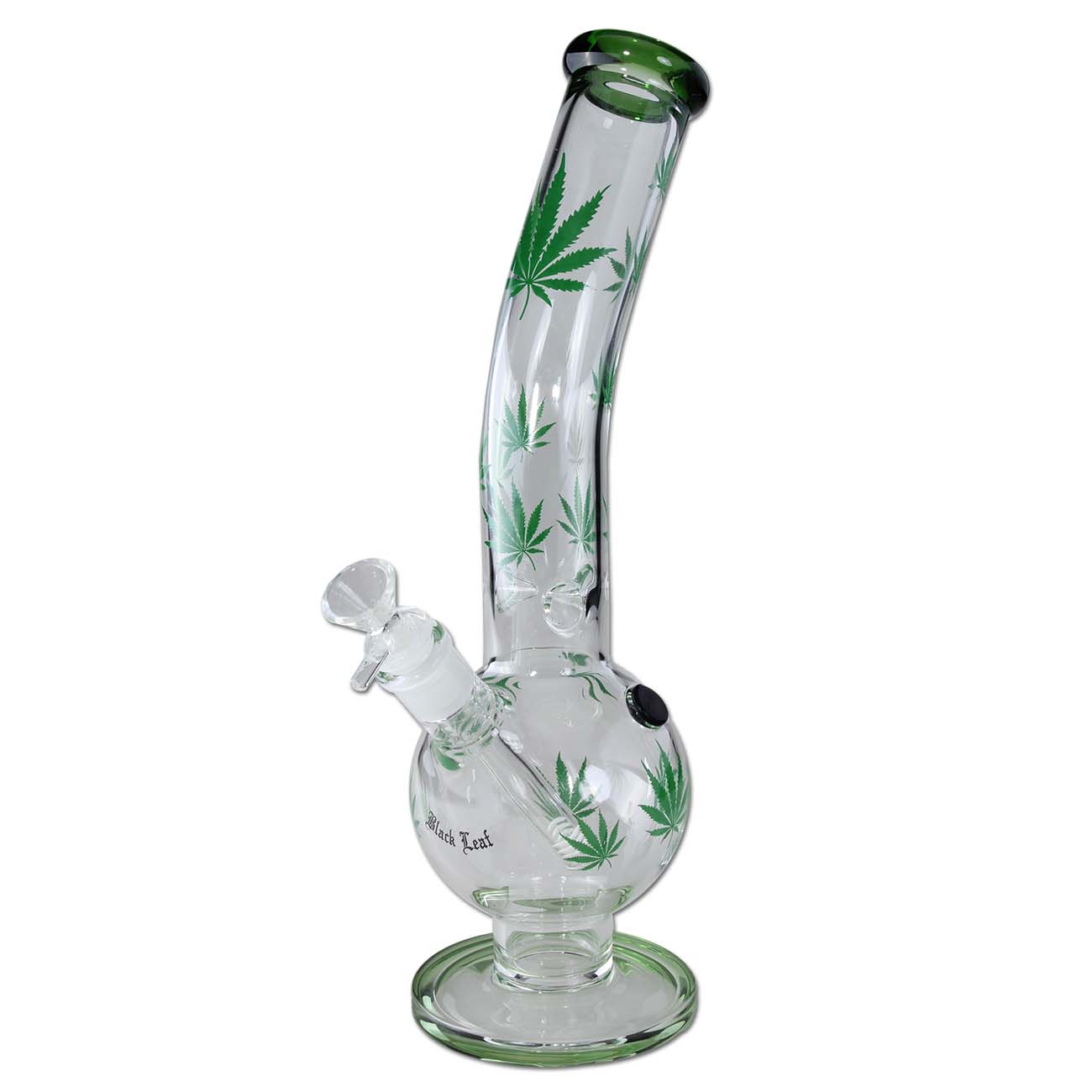 Ice Bong in Vetro Green Purple Leaves Bent 35cm - Black Leaf